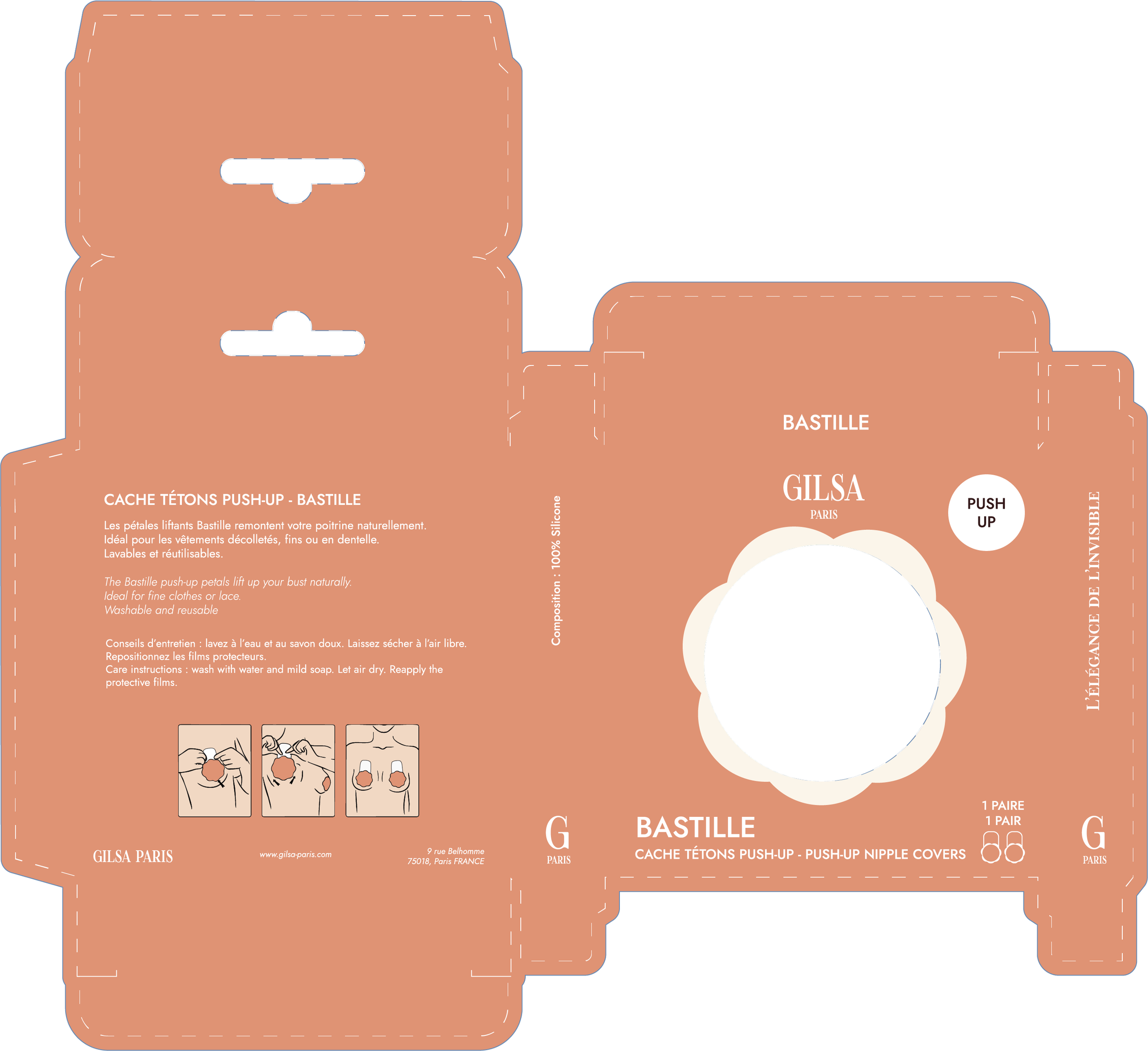 le positionnement définit la direction artistique, qui permet le déploiement concret de la marque sur tous ses supports : c’est ce que j’ai réalisé dans les packagings, les catalogues produits et le site internet e-commerce de la marque.